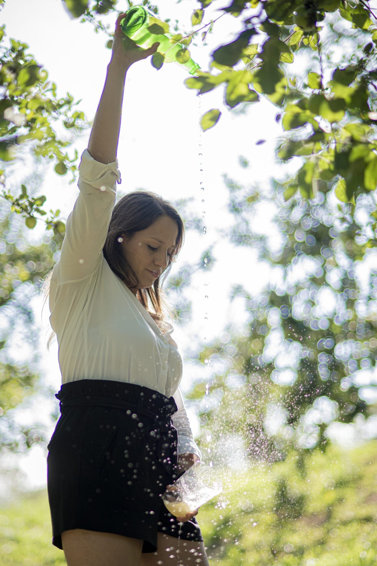 - Un vaso específico ⇒ vaso de sidra, de 12 cm de alto y boca de 9 cm, con cristal fino. La cantidad de sidra escanciada (culín/culete) no debería ser inferior a 100 ml, ya que la sidra necesita un mínimo de líquido para que al echarla y choque contra el vaso, libere su gas carbónico y mejore sus atributos.